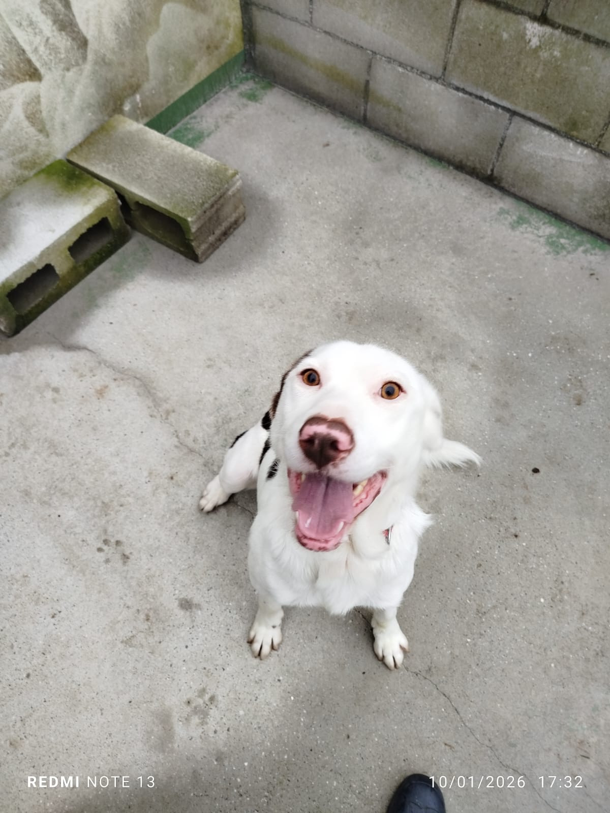 Segundo sabemos, pasou por d煤as familias antes de chegar a n贸s: a primeira perdeuno ou abandonouno, e a segunda cedeuno por problemas familiares alleos a el. Leva case un mes con n贸s e demostrou ser un bo can, afectuoso e con moitas ganas de contacto humano.